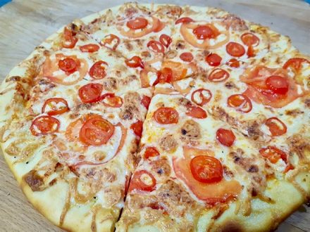 Моцарелла, соус томатный, помидоры, помидоры черри, базилик