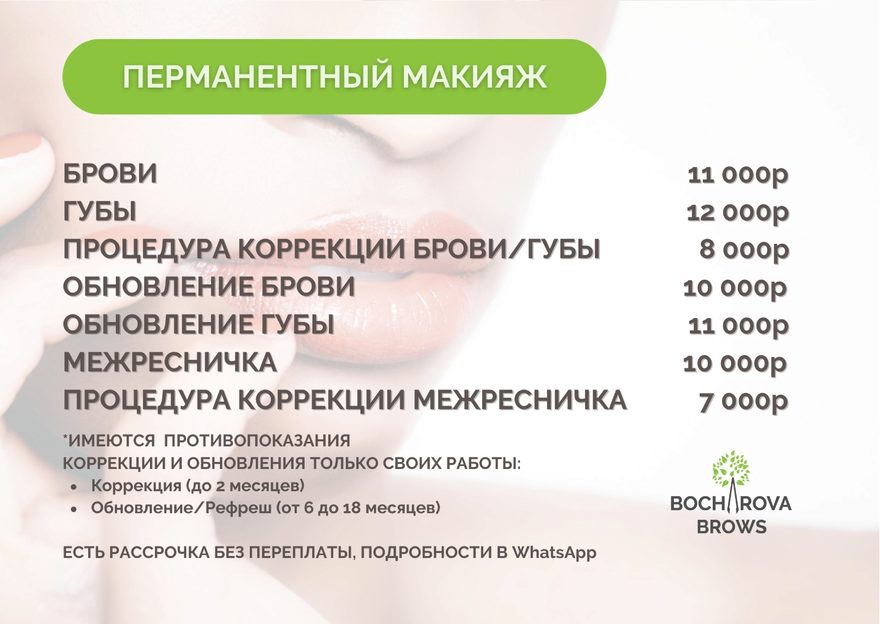 Есть возможность рассрочки на услуги перманентного макияжа.