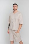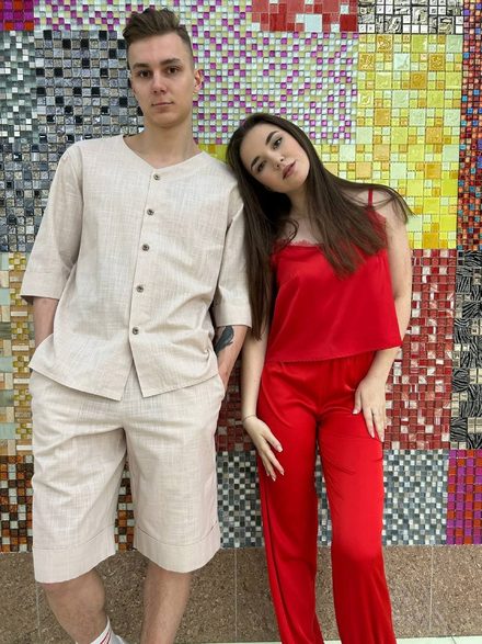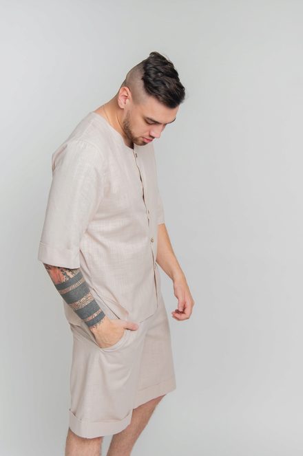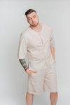 Мужской костюм из 100% хлопка, мягкий и приятный к телу. Хорошо пропускает воздух, не сковывает движения. Не скатывается. Мужской костюм прямого кроя с небольшими разрезами на рубашке по бокам, для комфортности в движениях. Шорты с карманами в поясе резинка. Пуговицы на рубашке сделаны из кокоса. Такой мужской костюм отлично подойдёт для прогулок в тёплую погоду, или для домашней мужской одежды. Можно носить по отдельности, рубашку с джинсами или брюками, а шорты с футболкой. Одежда нашего бренда LV имеет безупречный пошив и идеальную посадку. Мы создаём наши изделия из премиальных тканей, дизайн обновляется достаточно часто, поэтому количество изделий каждой модели ограниченное количество. Успейте приобрести свой размер. С Уважением команда LV!