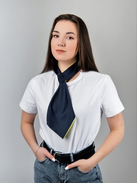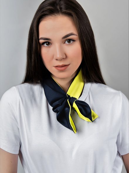Подходит платок под футболку или блузку, для коллектива, офисный аксессуар, повседневного или вечернего образа.
