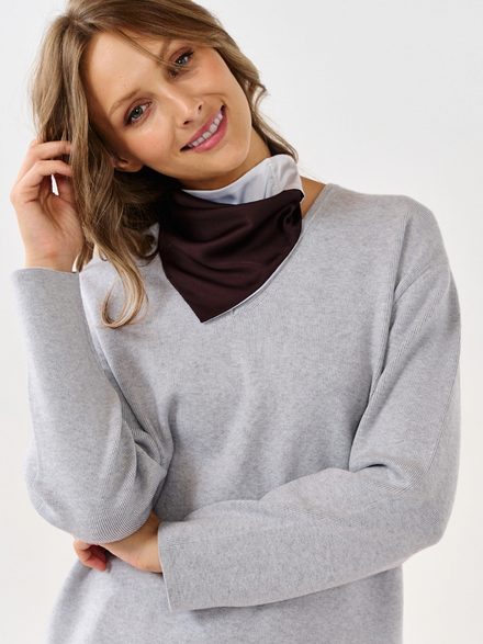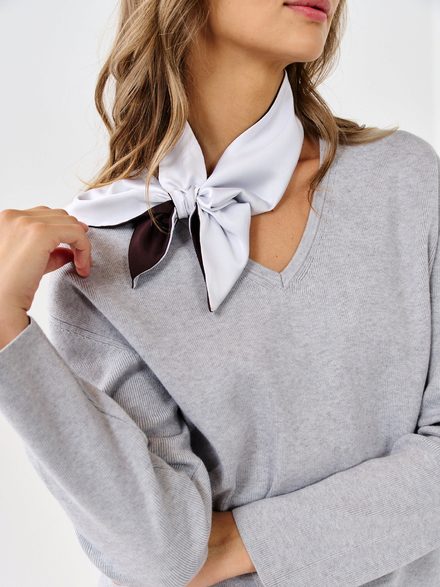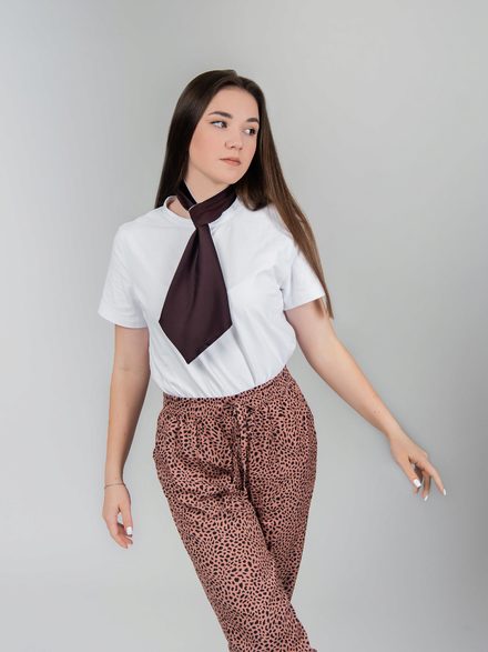 Подходит платок под футболку или блузку, для коллектива, офисный аксессуар, повседневного или вечернего образа.