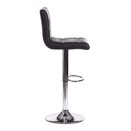 Простая форма, стеганая обивка из черной экокожи и металлическая хромированная ножка придают стулу особую привлекательность, оригинальность и визуальную легкость. Удобная подставка для ног, механизм регулировки высоты, мягкое сиденье и спинка позволяют комфортно расположиться на длительное время. Металлическая ножка и круглое основание придают модели большую устойчивость. Экокожа не мнётся, не меняет форму, проста в уходе. Металлический каркас отличается прочностью, устойчивостью к износу и долговечностью.