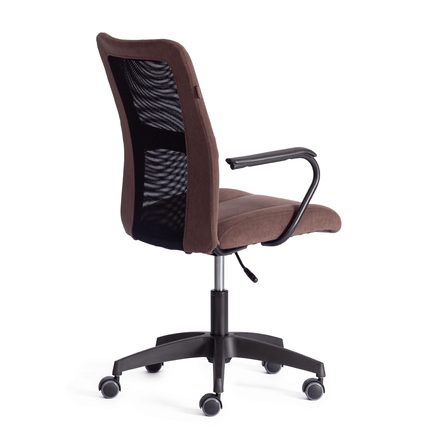 Оригинальное компьютерное кресло Стаф - идеальное решение для комфортной работы дома или в офисе. Каркас сиденья надежен, крепок, выполнен из многослойной фанеры толщиной не менее 10 мм. Для комфорта и долговременной эксплуатации в наполнении сиденья кресла используется ППУ плотностью не менее 30 кг/м3. Модель обита износостойким флоком с водоотталкивающей пропиткой. Такой материал не требует сложного ухода, долговечен, выдерживает 50000 циклов на истирание по Мартиндейлу, выглядит стильно и привлекательно. Однослойная сетчатая обивка черного цвета, плотностью 280 г/м2 обеспечит вентиляцию и добавит комфорта в жаркое время года. Прочный каркас спинки с усилением изготовлен из металлической трубы диаметром 19 мм и стенкой толщиной 1,2 мм. Удобные подлокотники с пластиковой накладкой снизят напряжение в спине, помогут расслабиться при длительном времяпрепровождении за компьютером. Кресло регулируется по высоте. Механизм усилен скобой из стали толщиной 2,5 мм и способен выдержать нагрузку до 100 кг. Газлифт кресла от надежного и проверенного поставщика соответствует 3 классу стандарта DIN и имеет ход около 100 мм. Устойчивое основание модели выполнено в виде 5-лучевой полиамидной (по своей плотности материал близок к стали) крестовины. Ролики диаметром 50 мм, изготовленные из прорезиненного полиамида, бесшумны и не повреждают напольное покрытие. Благодаря своей функциональности и привлекательности компьютерное кресло STAFF коричневого цвета станет незаменимым предметом интерьера, прекрасно впишется в рабочий кабинет офиса или дома, удивит вас своей долговечностью, удобством и отличными эксплуатационными качествами. Модель поставляется в разобранном виде. Необходима простая сборка по прилагаемой инструкции.