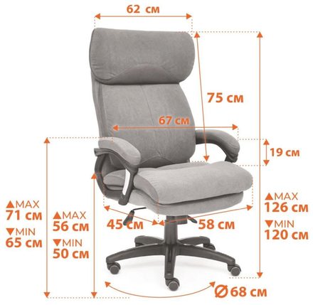 Эргономичная спинка, прочный каркас, мягкое сиденье компьютерного кресла Дюк из коллекции OFFICE - воплощение элегантности, практичности и солидности. Модель отлично впишется в дизайн рабочего кабинета как офиса, так и дома. Каркас из экологически безопасной фанеры толщиной до 15 мм гипоаллергенен и надежен. Широкое сиденье с мягким наполнителем из пенополиуретана стандартной плотности (до 35 кг/м2) с независимыми пружинными блоками подстраивается под контуры тела человека, обладает отличными эксплуатационными качествами. Регулировка высоты и наклона с фиксацией в любом положении до 15 градусов помогут принять комфортную позу для продолжительной работы. Пластиковая крестовина с декоративными вставками обладает долгим сроком службы, не требует сложного ухода, не теряет своего первоначального внешнего вида на протяжении длительного времени. Полиуретановые ролики с прорезиненными вставками бесшумны, не повреждают напольное покрытие. Мягкий подголовник, удобные фиксированные подлокотники с накладками снимут напряжение с шеи и плеч. Офисное кресло, обитое прочной тканью с необычной текстурой или износостойкой экокожей в сочетании с сеткой, представлено в нескольких вариантах: сером, коричневом, бежевом, бронзовом и черном цветах. Экокожа , используемая при изготовлении кресла, выдерживает до 50 000 циклов на истирание по Мартиндейлу, ткань флок также выдерживает до 50 000 циклов, мягкая ткань рогожка выдерживает до 40 000 циклов. Ткани с прочностью более 35 000 циклов являются самыми долговечными.Мебель, в которой используются такие ткани можно использовать не только дома но и в ресторанах, салонах красоты, приемных. Уникальная модель Дюк подчеркнет безупречный вкус владельца и придаст интерьеру презентабельный вид. Максимальная нагрузка 120 кг. Компьютерное кресло поставляется в разобранном виде. Требуется простая сборка по прилагаемой инструкции.