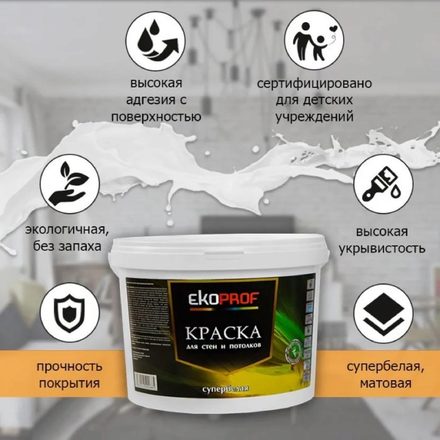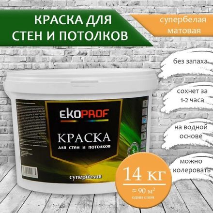 Краска для стен и потолков акриловая супербелая 14 кг AKRIMAX - 1 шт