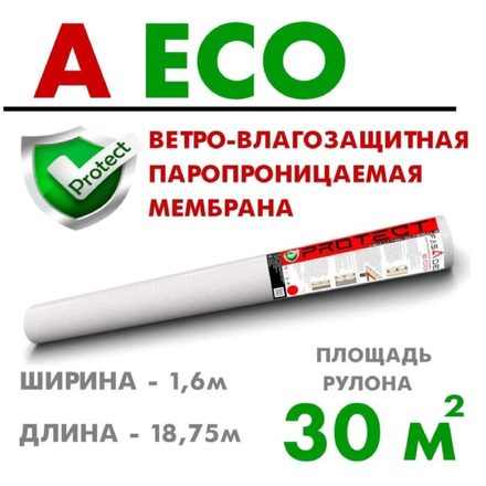 PROTECT A ECO, 30 м2 ветрo-влагозащитная паропроницаемая мембрана, пленка, ветрозащита для стен и кровли