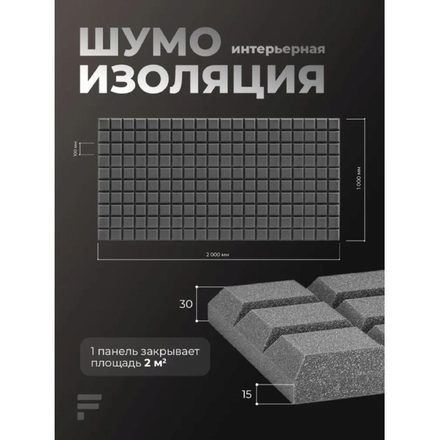 Акустический поролон Шоколад 30х1000х2000 мм, 4 шт / Шумоизоляция / Звукоизоляция для стен
