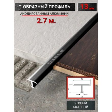Алюминиевый Т образный стыкоперекрывающий порог ПТ 13мм черный/мат 2,7м.