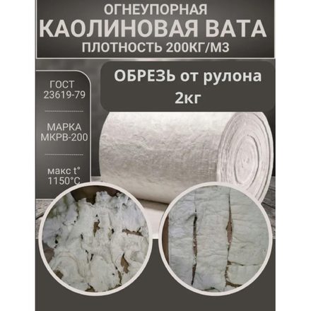 Вата каолиновая огнеупорная МКРВ-200, обрезь ГОСТ, теплоизоляция для печей, труб, котлов, каминов