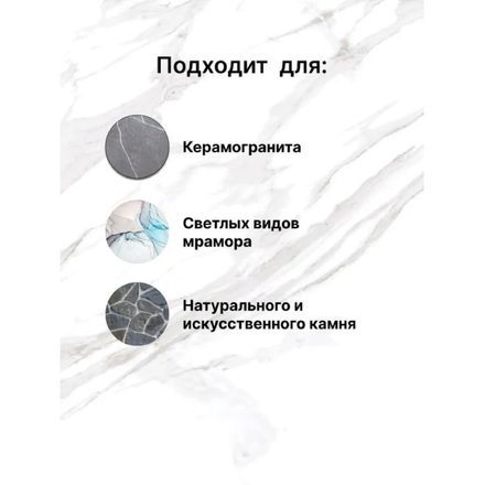 • Не образует жирных ореолов на светлых видах мрамора.