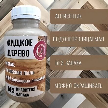 СОСТАВ: Готовая акриловая вязкая смесь. В составе: древесная пыль + акрилово-прозрачный клей антисептик без запаха без красителя. Сильная адгезия к дереву.