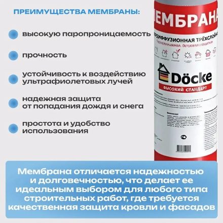 Мембрана Docke AT 130 EL ветро-влагозащитная супердиффузионная универсальная с клеевой полосой