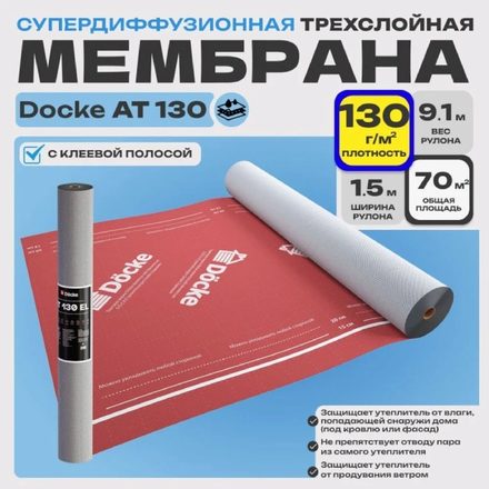 Мембрана Docke AT 130 EL супердиффузионная ветро-влагозащитная универсальная с клеевой полосой - 70м2