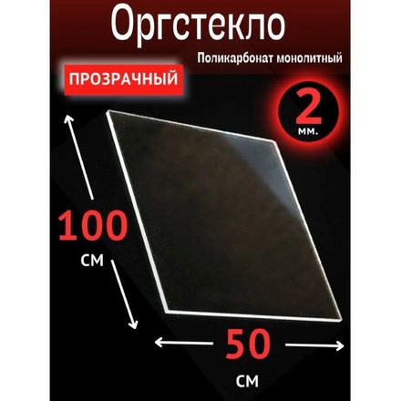 Оргстекло. Монолитный поликарбонат 2мм. 1000х500 мм. Прозрачный