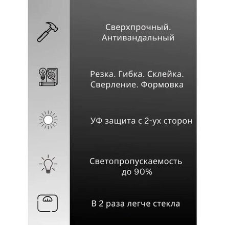 1 лист монолитного поликарбоната в защитной пленке.