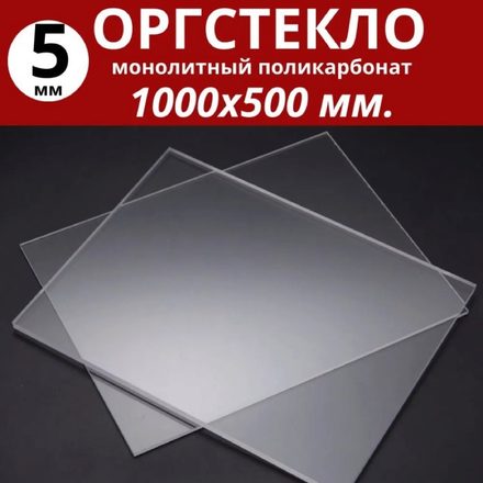Оргстекло/монолитный поликарбонат 1000х500мм. 5 мм. Цвет: прозрачный