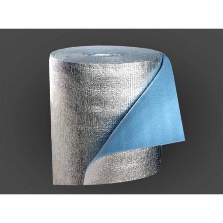 Самоклеящийся материал на основе вспененного полиэтилена, голубого цвета, с закрытой пористой структурой, дублированный алюминиевой фольгой с защитой от подделок - универсальной печатью с одной стороны и клеевым слоем с другой.