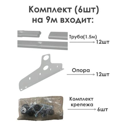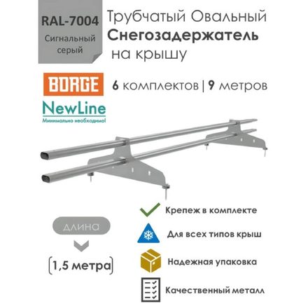 Снегозадержатель на крышу 1,5 метра (6 комплектов / 9 метров) трубчатый овальный 40х20 / (RAL-7004)-Сигнальный Серый
