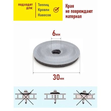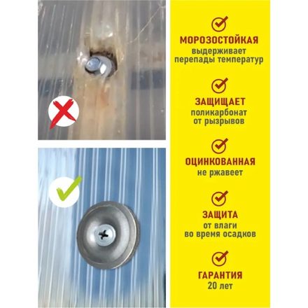 Пресс-шайба предназначена для крепления сотового поликарбоната к несущим направляющим - служит широкой прокладкой между саморезом и поликарбонатом.