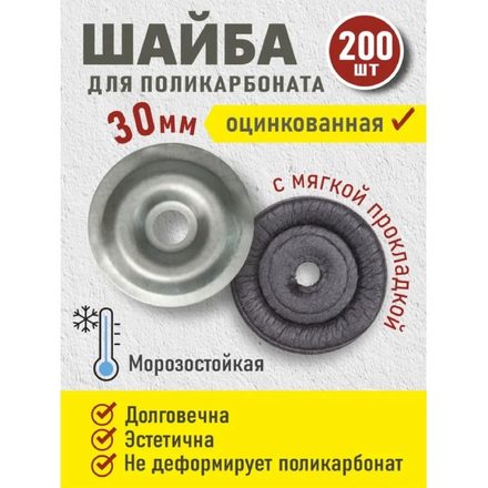 Термошайба для поликарбоната/ Пресс-шайба оцинкованная с уплотнением 30мм 200 штук