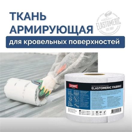Армирующая ткань ELASTOMERIC Fabric для гидроизоляции – из нетканого полиэфирного полотна, специально создана для использования с полимерами, наносимых в жидком виде, при монтаже кровельных мембран, фундаментов, подпорных стен, резервуаров с водой, бассейнов с бетонным и металлическим основанием. Пленка армированная ELASTOMERIC Fabric применяется для усиления примыканий к парапетам, дымоходам, водостокам, а также швов, разрывов, стыков, трещин и мест возможных деформаций.
