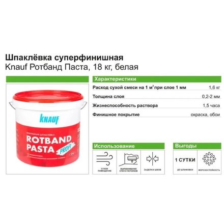 Шпаклевка готовая KNAUF Rotband Pasta Profi, 18кг