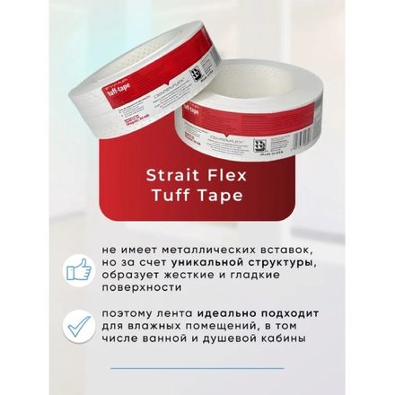 Оригинальная углоформирующая армирующая лента Strait-Flex Tuff Tape (Страйт Флекс Тафф Тэйп) является перфорированной лентой, разработанной специально для обработки стыков и швов гипсокартона. Ширина 57 мм, длина 30 метров.