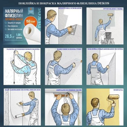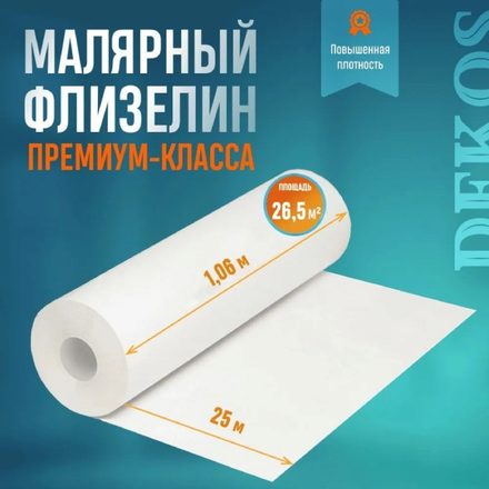 Малярный флизелин грунтованный DEKOS 150гр/м2 -1 рулон Поставляется в герметичной упаковке с высокой степенью защиты от влаги и повреждений