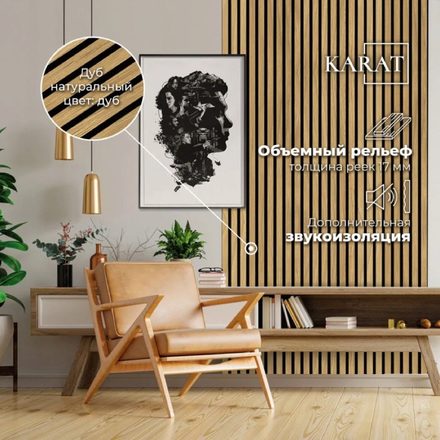 Стеновая панель реечная ШПОН ДУБ, 2750 х240 х23 комплект-1шт, МДФ c эффектом 3d, вес 9.5кг. SP КАRАТ