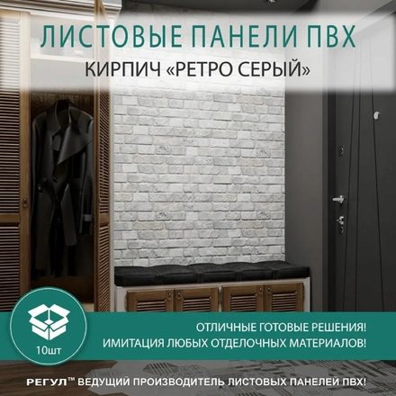 Стеновые панели Регул ПВХ 3d для ванной на кухню декоративные влагостойкие Кирпич "Ретро серый" 10 шт.