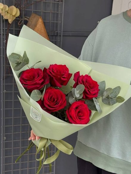 Состав: Красная Роза Эксплорер Эквадор , эвкалипт