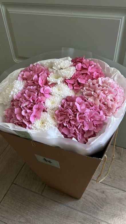 Состав: розовая гортензия, кустовая хризантема Алтай