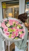 Состав: розовая пионовидная роза Эквадор, эустома белая, ветки эвкалипта