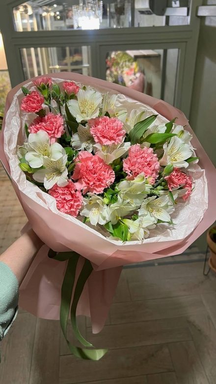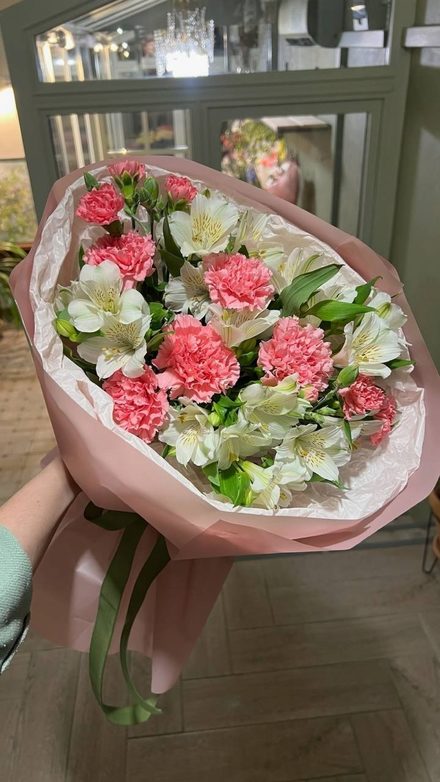 Состав: розовый лиантус и белая альстромерия