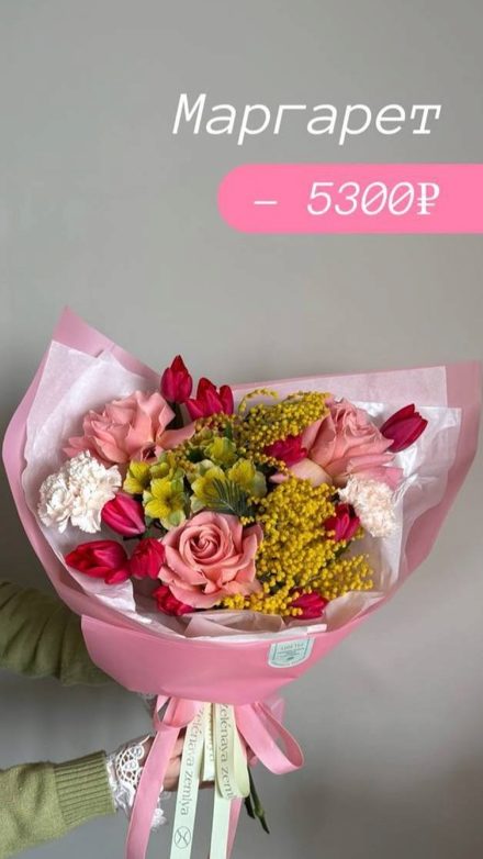 Состав: Желтая мимоза, желтая альстромерия, диантусы, французская Роза Персиковая Эквадор, алые тюльпаны Краснодар .
